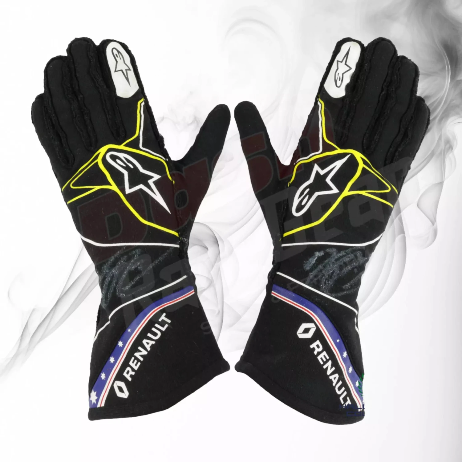 These gloves where worn by Daniel Ricciardo while driving for Renault F1 team during the 2019 Formula 1 season.