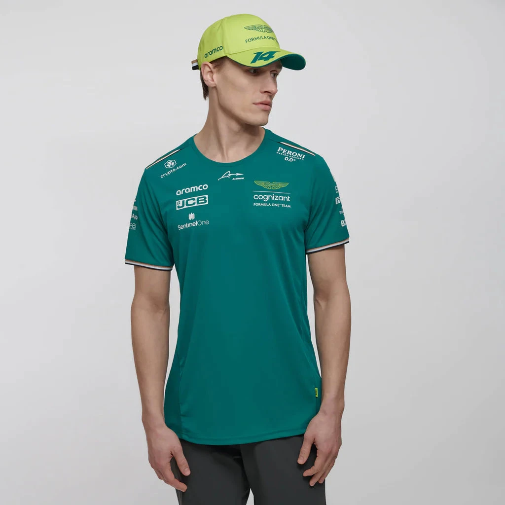 The latest Aston Martin Aramco Cognizant Formula One Official Fernando Alonso T-Shirt, embodies our mission with a fresh take on our striking attire. It simply is a must-have item which is manufactured from moisture function recycled polyester fabrics. The inclusion of fly knit sports mesh to the side panels and the iconic BOSS branded woven label to side seam add to the T-Shirt’s impressive functionality and style.