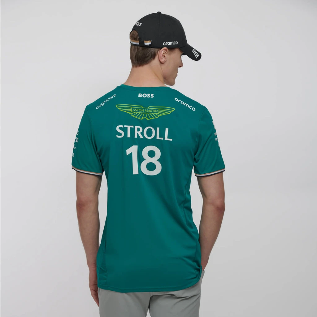 The latest Aston Martin Aramco Cognizant Formula One Official Lance Stroll T-Shirt, embodies our mission with a fresh take on our striking attire. It simply is a must-have item which is manufactured from moisture function recycled polyester fabrics. The inclusion of fly knit sports mesh to the side panels and the iconic BOSS branded woven label to side seam add to the T-Shirt’s impressive functionality and style.
