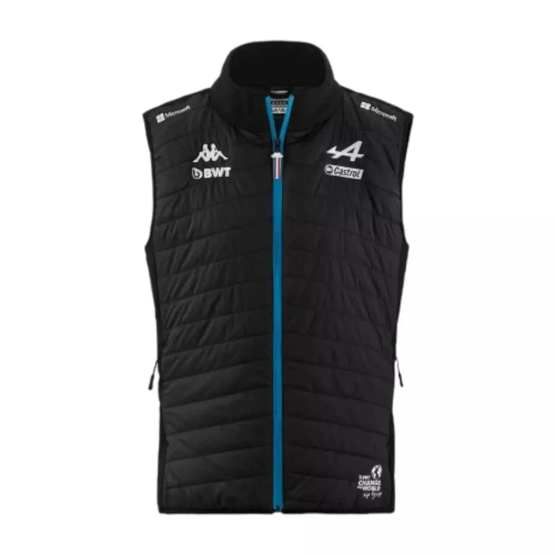 The black ARAFSLESS sleeveless jacket is a jacket designed exclusively for the BWT ALPINE F1® Team.