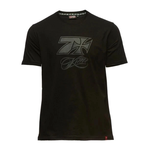The black Kimi Räikkönen T-shirt “OG” shows the logo “Cross Seven” on the front, a combination of Kimi’s starting number 7 and the cross logo of West Coast Choppers. The back of the shirt picks up this emblem in a larger format and also features Räikkönen’s name. The West Coast Choppers manufacturer’s logo is printed on the left sleeve.