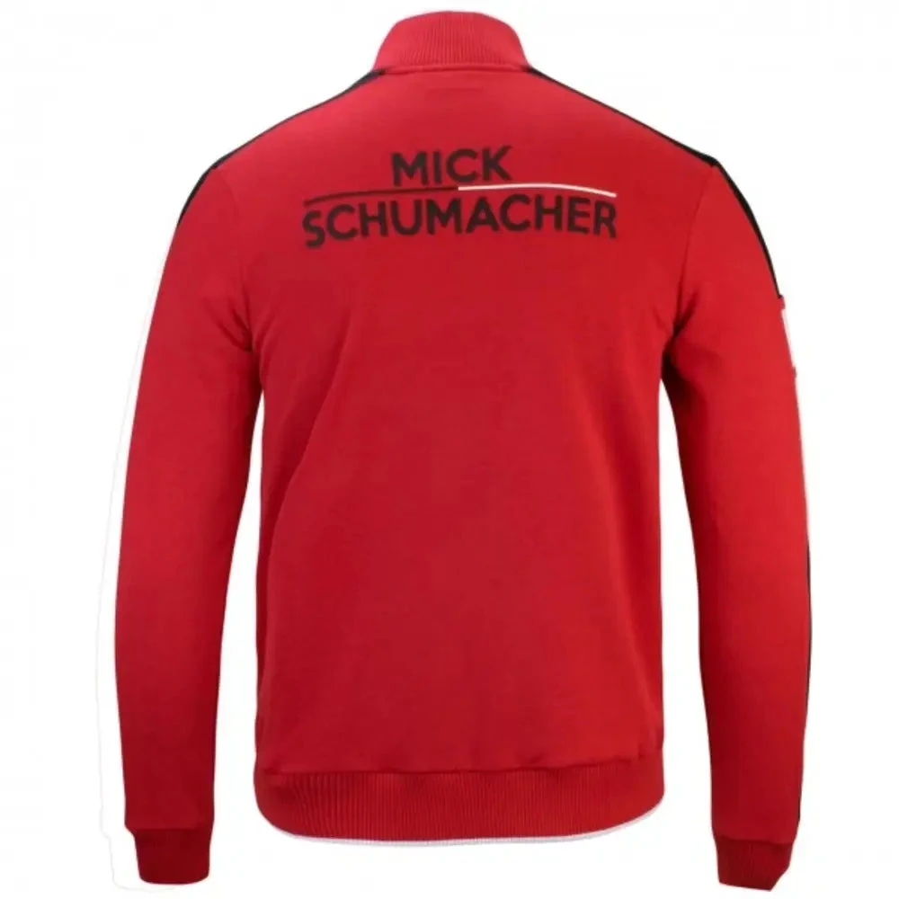 The red sweat jacket “Fan” is, along with other products such as shirts, jumpers, caps and accessories, part of the Mick Schumacher Fan Collection, which is dedicated to Mick’s debut in Formula 1, the top class of motorsport.