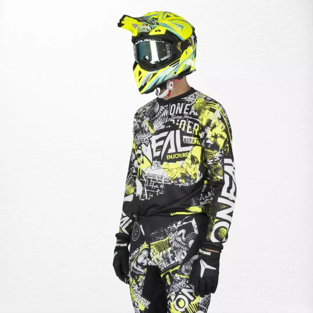 The O’Neal Element sweater is a smooth and ventilating jersey made of moisture-wicking polyester. It is equipped with a longer back piece that helps keep the shirt fastened in the trousers in the riding position, lightly padded elbows and a comfortable V-necked collar that makes the shirt compatible with neck protection.