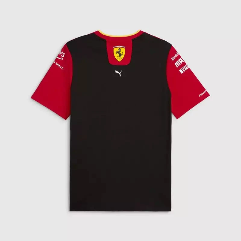 As worn by the Scuderia Ferrari team for the 2023 Italian GP, Monza. The yellow, black and red design celebrates Ferrari’s racing heritage, inspired by the team’s F1 and LeMans liveries. Available in limited quanties whilst stocks last.