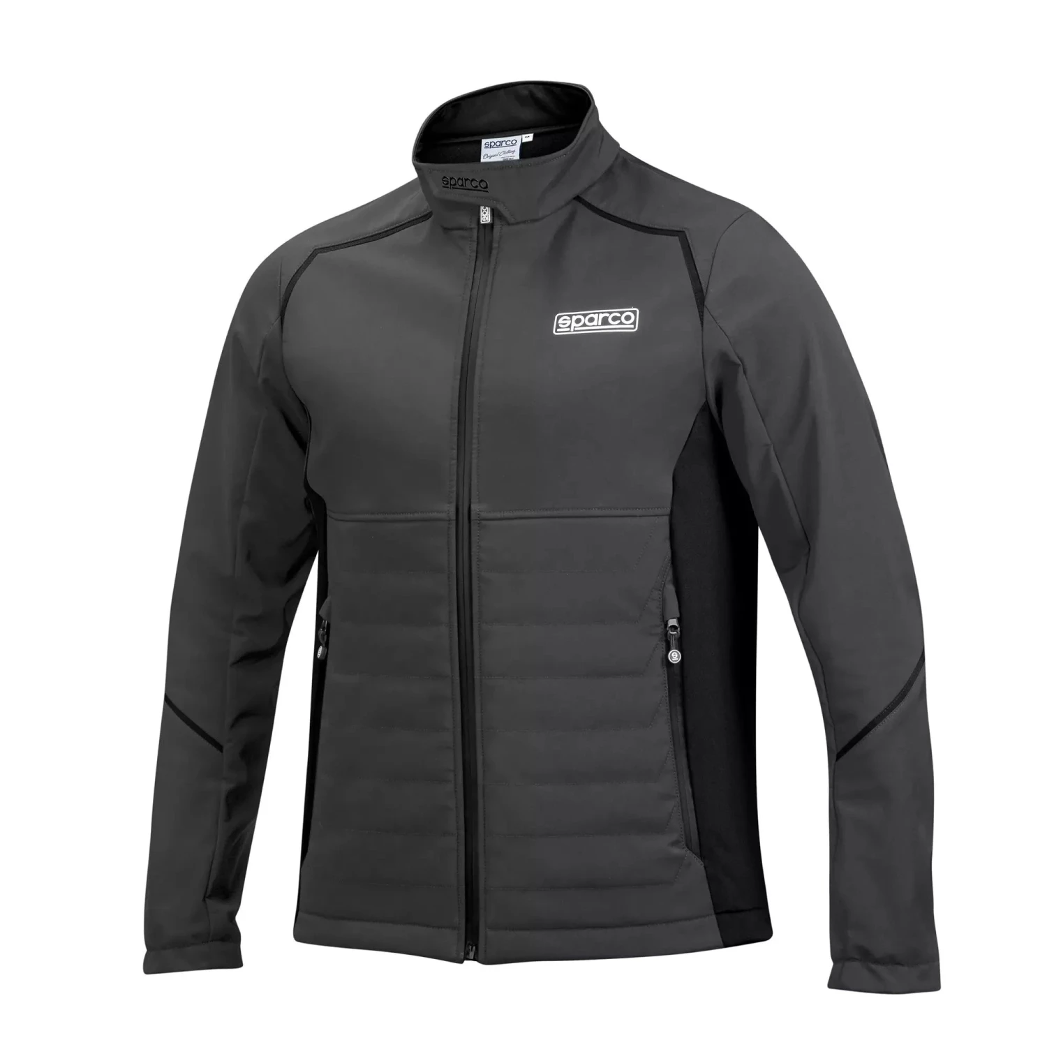 The Sparco Soft Shell Jacket is a three-layer windproof and waterproof garment. It has F leece Inner Lining and Rubber coated zips. It also has stretch side panels on the Jacket which allow for a more comfortable and easy fit. Other features include a drawstring fastening, and the sleeves have internal elasticated cuffs.