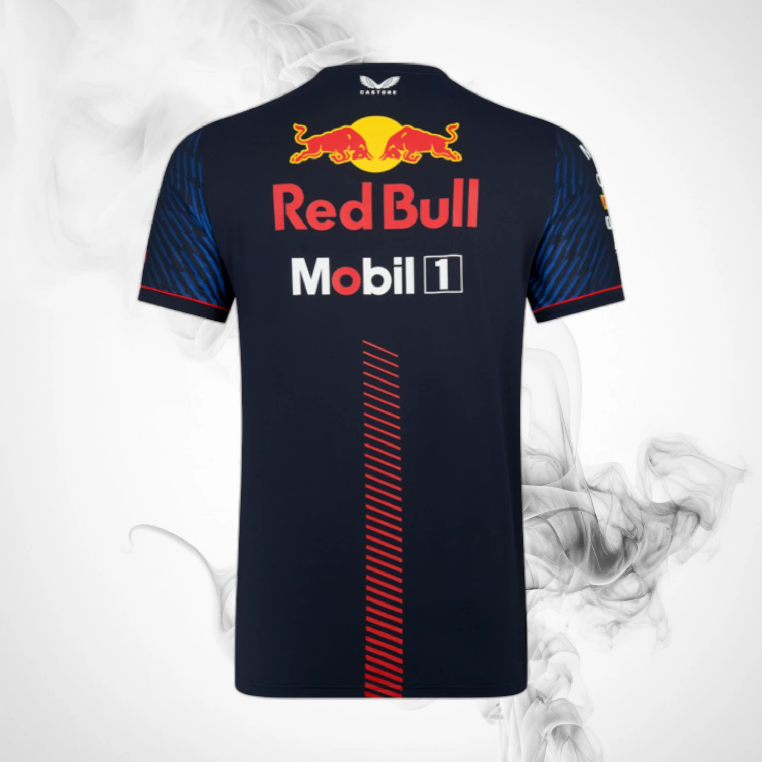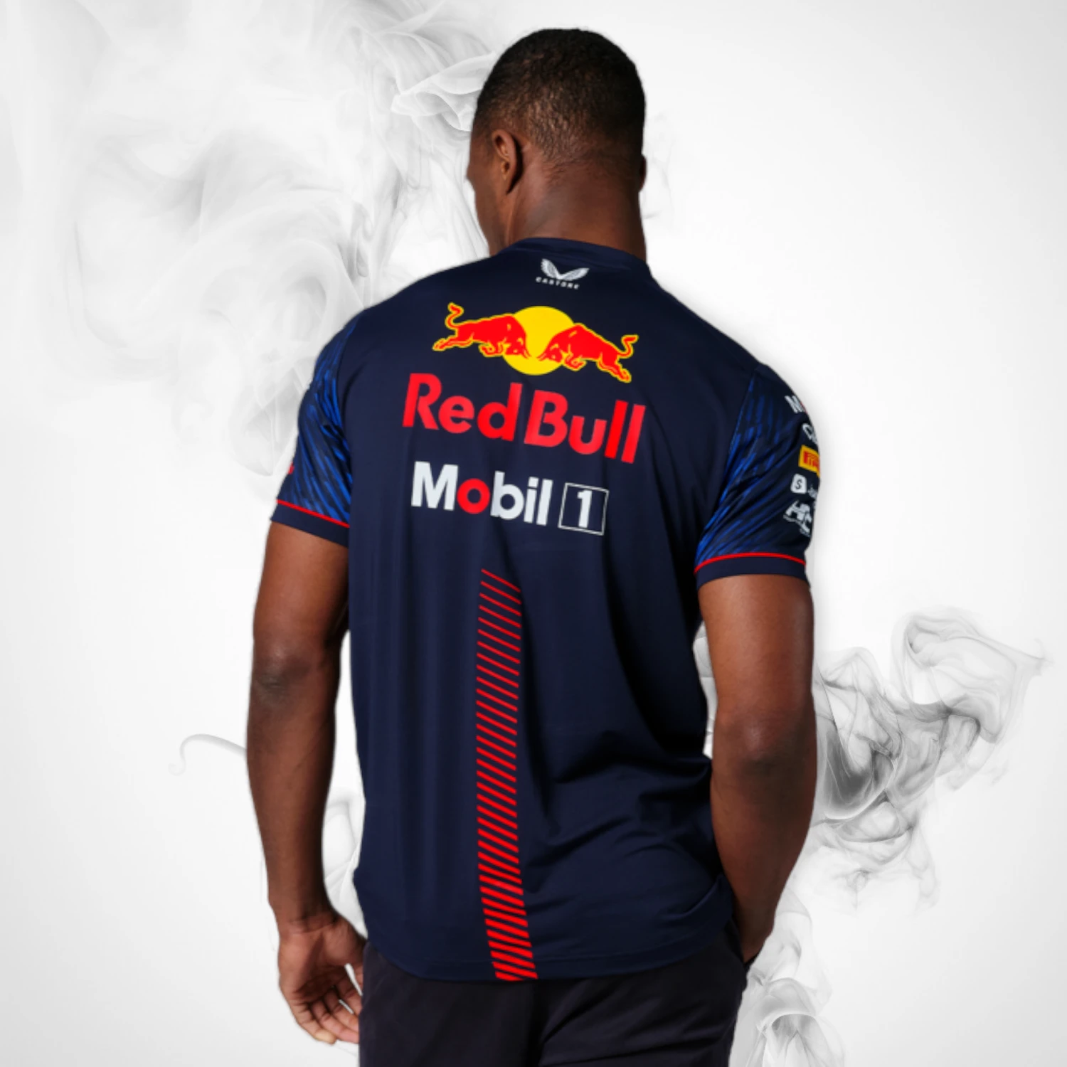 The Red Bull Racing T-shirt for men 2023 is an exact replica of the Red Bull Racing team tenue which is worn during the Formula 1 season 2023 by both the Red Bull Racing Team and Max Verstappen himself.